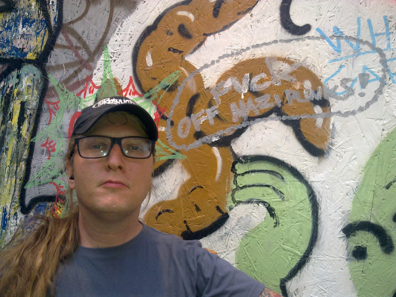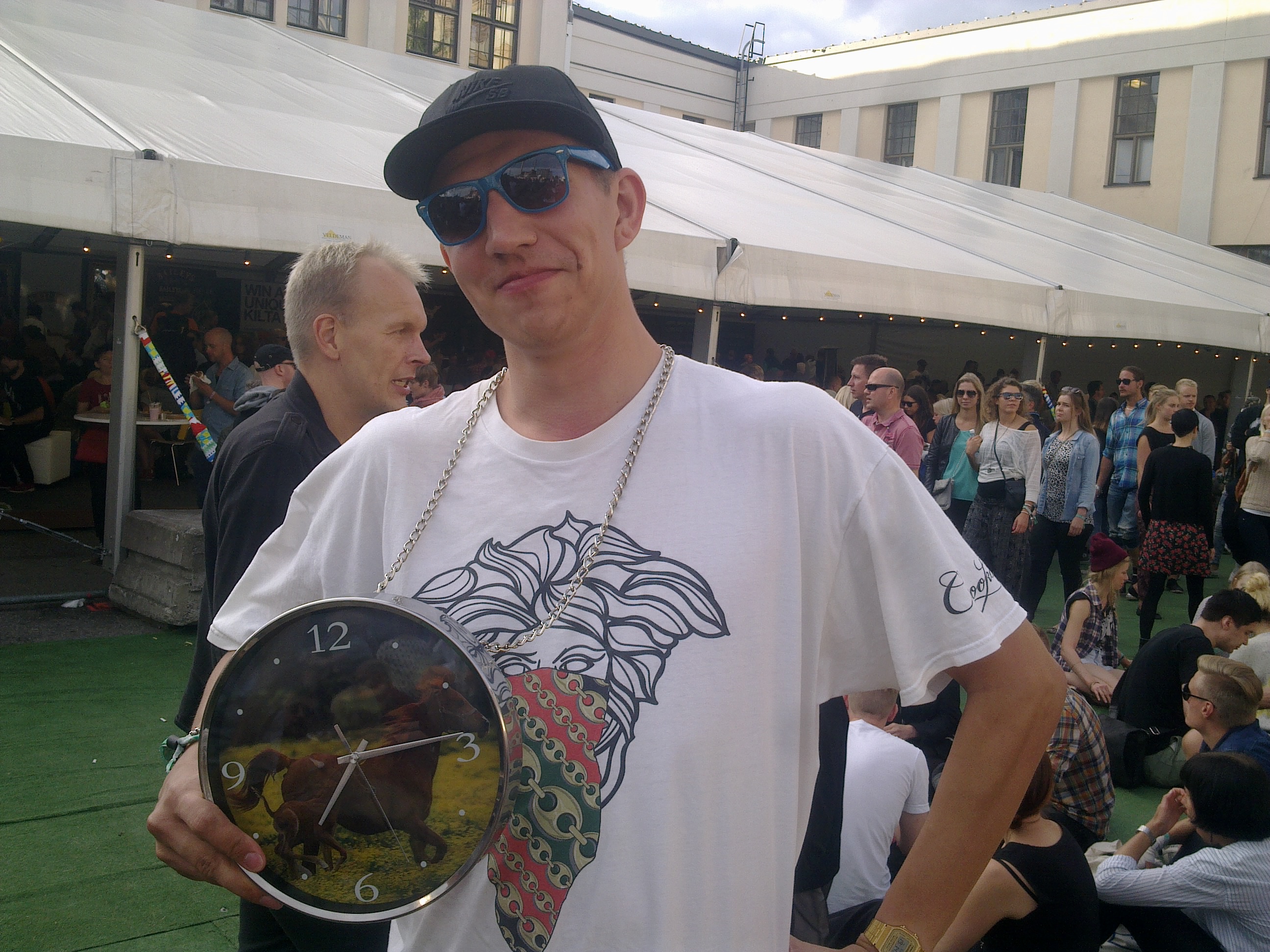 Flow Festivalin hienoin oheistoiminta oli kaikille avoin graffiti- ja töherrysseinä, jolla jokainen saattoi ottaa kantaa vihaa ja rasismia vastaan. Kolmelle festaripäivälle oli varattu omat seinänsä, joihin vuoroillaan kävivät kantansa ilmoittamassa mm. Kauko Röyhkä ja tapahtuman virallisesti aukaissut Paavo Arhinmäki. Idean äiti, berliiniläinen eläkeläinen Irmela Mensah-Schramm oli koko viikonlopun festivaaleilla vastailemassa ihmisten kysymyksiin ja nauttimassa yleisesti festivaalitunnelmasta. Valitettavasti Noise.fi ei tavoittanut tätä iki-ihanaa mummoa yhteiskuvaan, joten joudutte tyytymään minun pärstäkuvaani ja minun terveisiini kaikille v**un natseille. Lue lisää The Hate Destroyerista Noisen ennakkojutusta ja Flow:n sivuilta. (Jarkko Veijalainen)