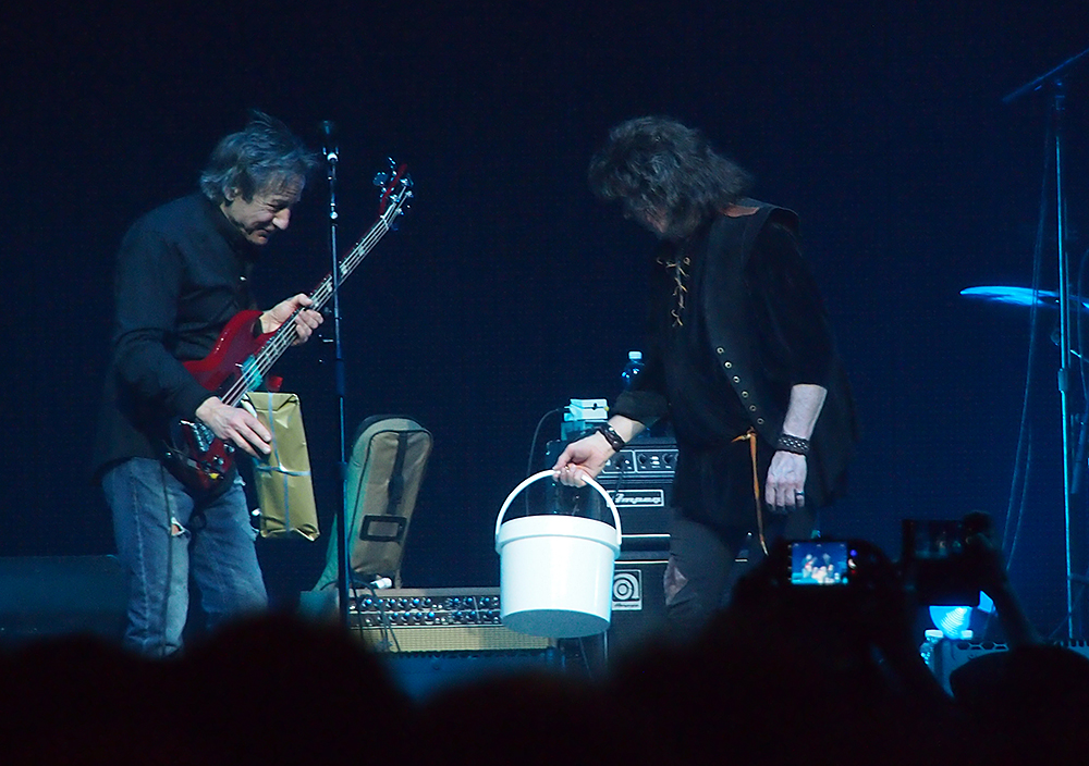 Jossain vaiheessa pitkää biisiäbasisti Bob Nouveau ilmoitti, että nyt olisi bassosoolon vuoro mutta ette te kuitenkaan sellaista halua kuulla (täysin totta, muuten). Sen sijaan hän alkoi spontaanin oloisesti soittaa Happy Birthday to Youta ja kaivoi esiin Blackmorelle osoitetun paketin kitarasankarin seuraavana päivänä olleen syntymäpäivänsä kunniaksi. Nouveaun spiikistä päätellen paketissa oli ilmeisesti miniatyyrikitara, joka Blackmoren olisi pitänyt panna palasiksi tai sytyttää tuleen niin kuin vanhoina hyvinä aikoina.