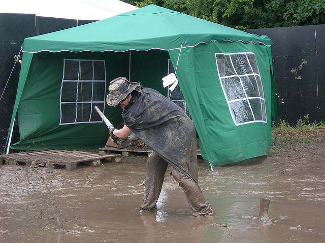 Mutavelliin hukkuneena ja auringonpistoksista kärsineenä, pakkaan joka vuosi mukaan vähän kaikkea. Kumisaappaat eivät paljoa paina rinkan pohjalla vaikka ei sataisikaan, mutta ne ovat parhaat ystäväsi jo pienessä sateessa. Roskilden maaperässä ei ole sen kummempia ojituksia, joten sadekuurot muuttavat vihreät pellot mutaisiksi nopeasti tuhansien jalkaparien muovauksessa. Puhumattakaan siitä kerrasta, kun opin tunnistamaan kymmenen erilaista mutatyyppiä lavojen väliä askeltaessani.