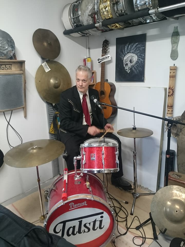 Erik Dahlströmin (s. 1967) lemppariartisteja, kestosuosikkeja ovat muun muassa Little Richard, Elvis Presley, Eddie Cochran, Carl Perkins, Charlie Feathers, Blue Cats ja Hurriganes. Sinulla on myös harrastuksellista taustaa rumpalina?